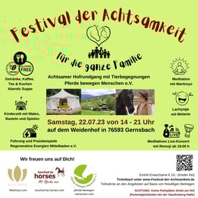 Wir freuen riesig euch zu unserem "Festival der Achtsamkeit für die ganze Familie" am Samstag, 22. Juli 23 zu uns auf den Weidenhof einzuladen.
