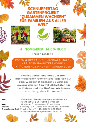 Regelmäßig Donnerstagnachmittags findet von 15.00-18.00 Uhr unsere Interkulturelle Gartengruppe statt, zu der alle Interessierten und Gartenfans herzlich eingeladen sind. Um kurze Anmeldung wir gebeten unter info@pferde-bewegen-menschen.com oder T. 07224-6200782
